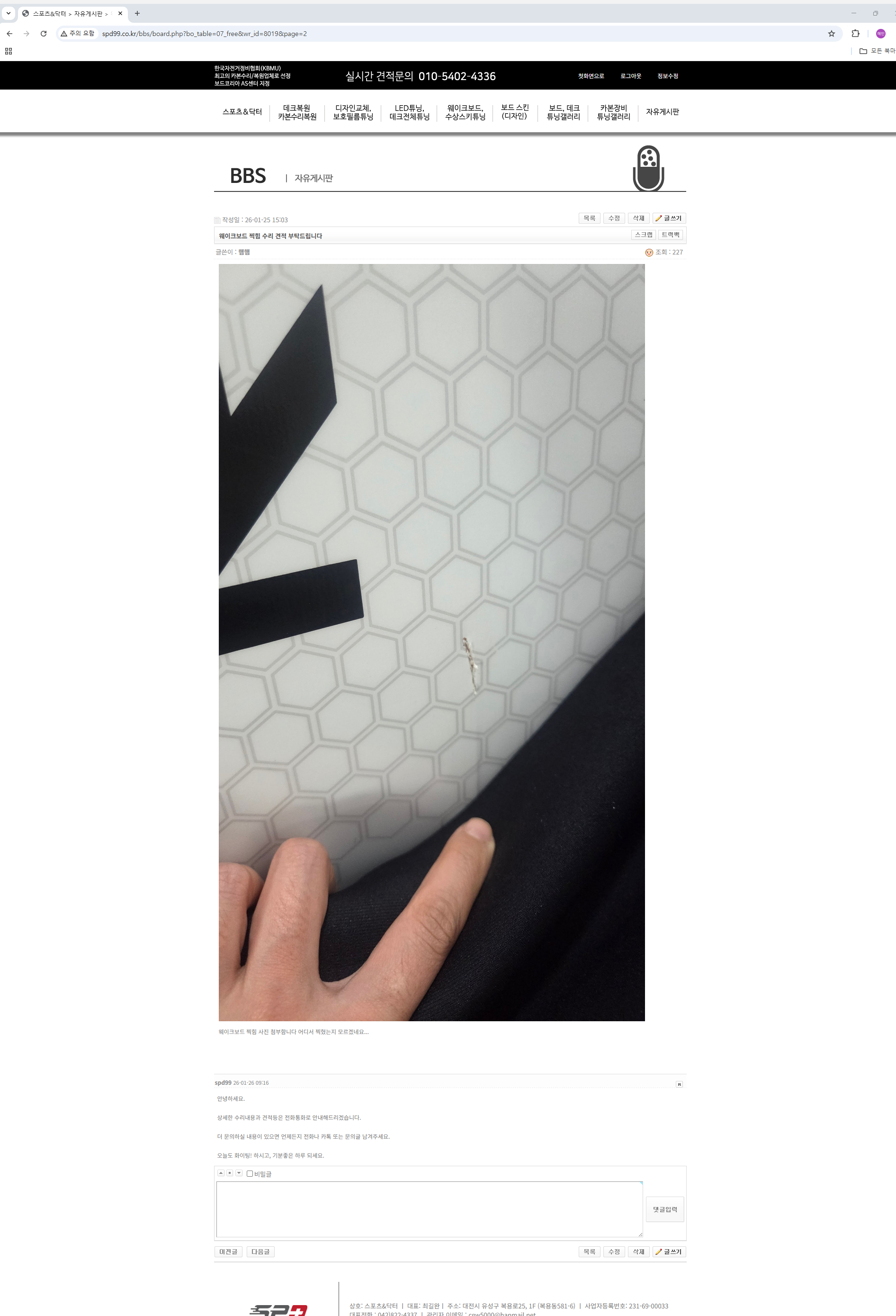 안녕하세요 예전에 아래와 같은 문의 드렸던 사람입니다 포장을 미루다가 이제 수리를 보내려 하는데 그때 안내해주신 택배정보를 잊어먹어서... 다시 한 번 연락 안내 부탁드려도 될까요 ㅎㅎ